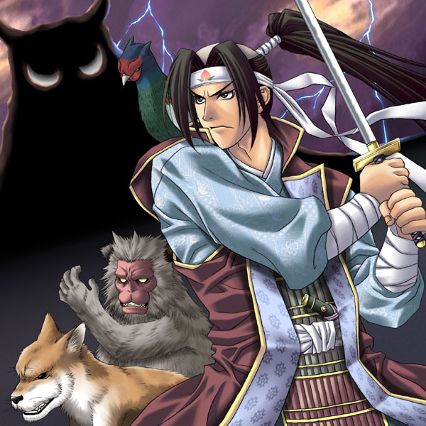 大塚明夫さん朗読による「桃太郎」のイラスト。